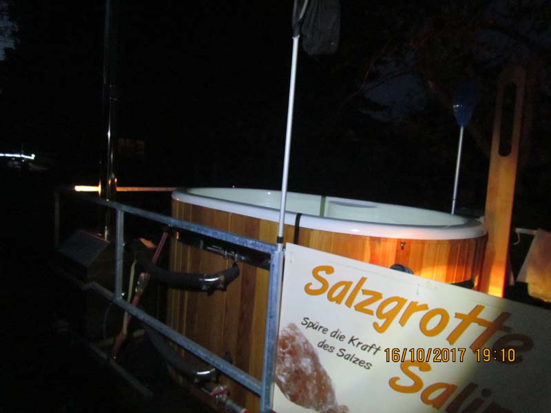 Gönnen Sie sich ein besonderes Wellnesserlebnis, in dem Sie unseren Badezuber zu sich nach Hause holen. An kalten Wintertagen, frischen Frühlingsabenden, lauen Sommernächten oder kühlen Herbsttagen - der Badezuber ist immer ein besonderes Erlebnis. Geheizt wird das Badefass mit einem Holzofen (35 kW), ein Wasseranschluß ist notwendig. Das Fass benötigt ca 820 l Wasser. Innerhalb von 1,5-2 Stunden erwärmt sich das Wasser auf 35-38 Grad. Das Badefass benötigt keinen Stromanschluß, da eine 50 A Batterie eingebaut wurde, dadurch kann das Fass außerhalb und im Wasser farbig beleuchtet werden. Im Badefass finden 2 Erwachsene und 2 Kinder bequem Platz. Holz für etwa 3 Stunden Badespaß ist inklusive.